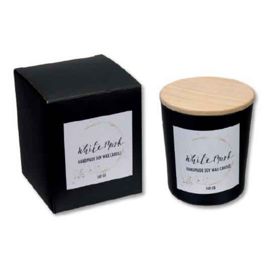 Αρωματικό κερί σόγιας σε βάζο με ξύλινο καπάκι με άρωμα white musk