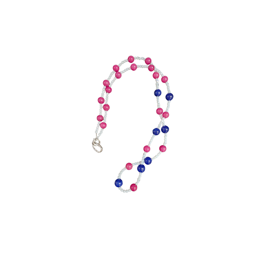 Χειροποίητο Μακρύ Κολιέ με Φούξια, Μπλε και Λευκές Χάντρες