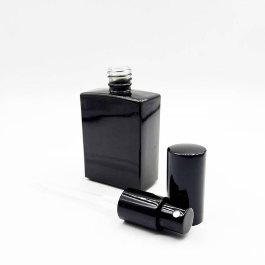 Γυάλινο μπουκάλι 50 ml σε μαύρο χρώμα με σπρέι και καπάκι