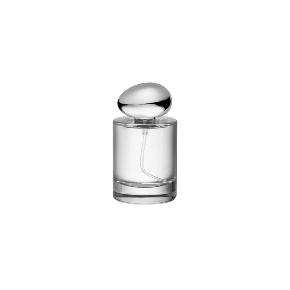 Γυάλινο μπουκάλι 50 ml διάφανο με σπρέι και ασημί καπάκι αλουμινίου