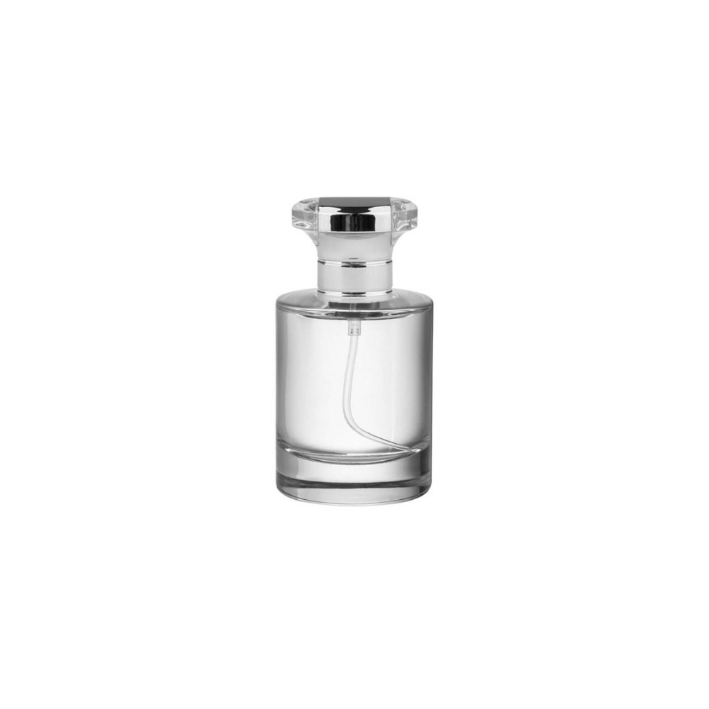 Γυάλινο μπουκάλι 50 ml διάφανο με σπρέι και ασημί καπάκι διαφανές