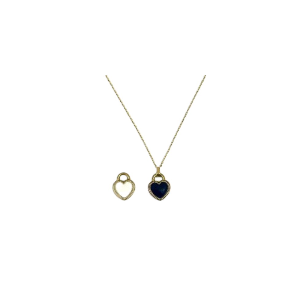 Κολιέ με ατσάλινο ασπρόμαυρο μοτίφ καρδιά (1013-760X)