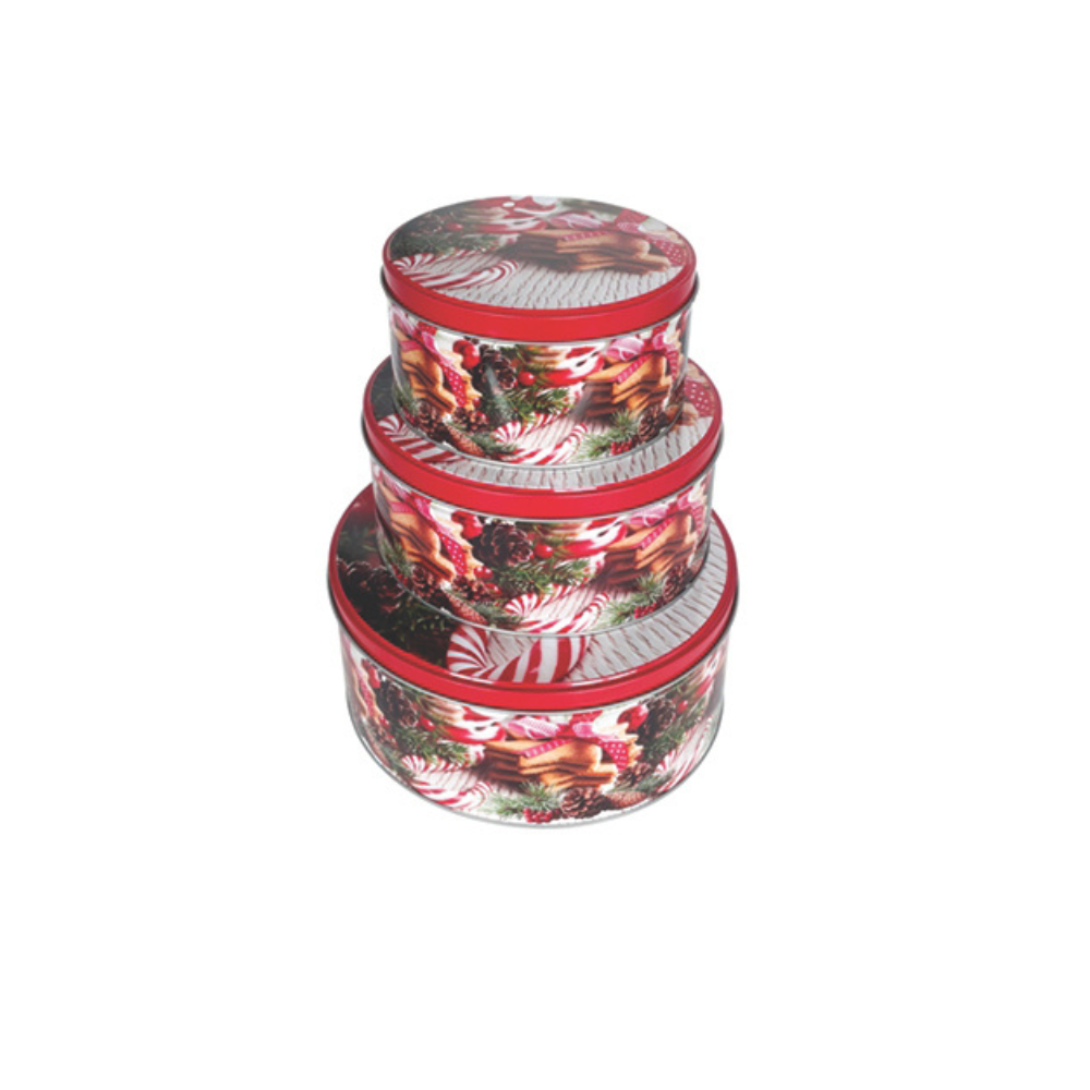 Σετ 3 μεταλλικά κουτιά στρογγυλά χριστουγεννιάτικα (00001885)