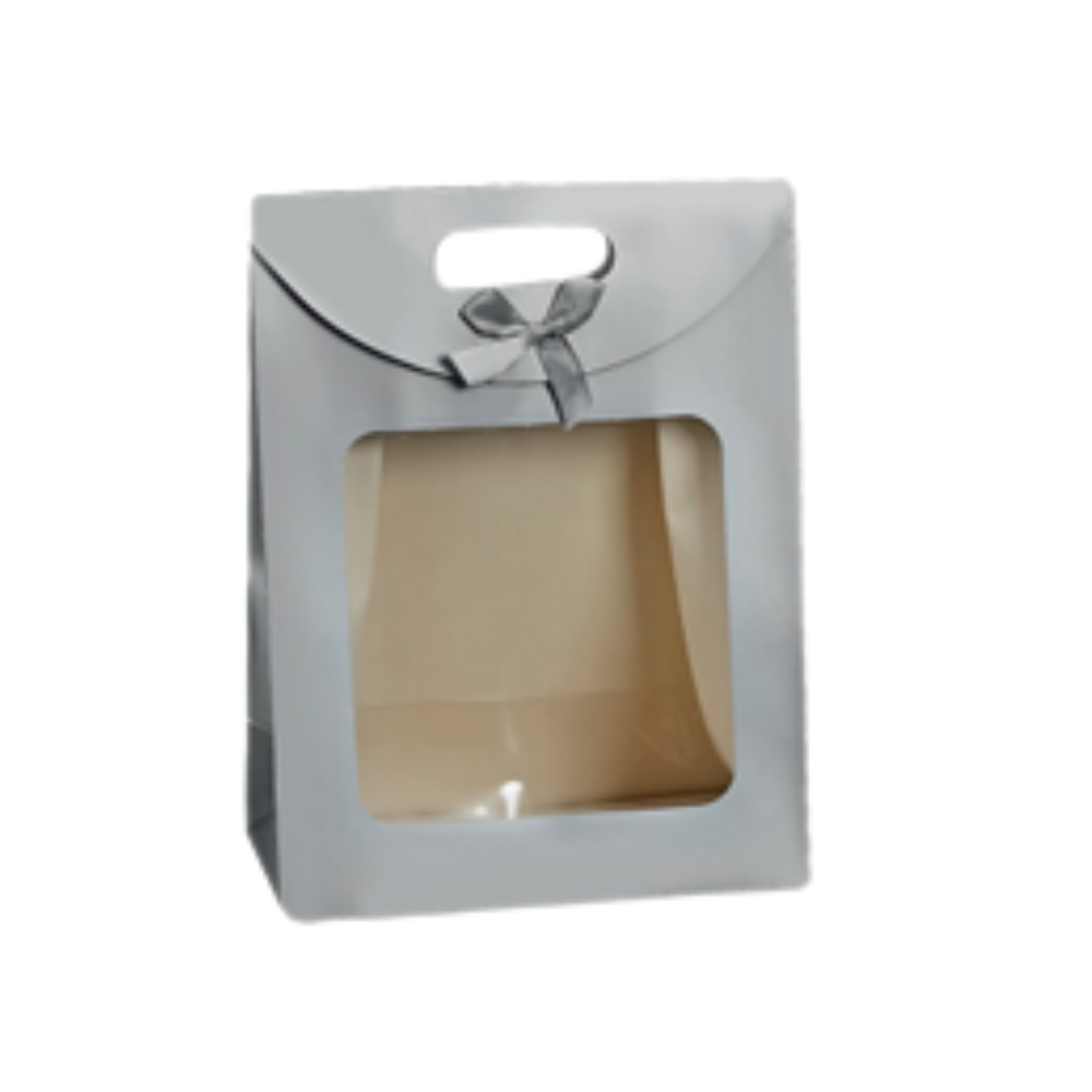 Τσάντα Δώρου με Παράθυρο και Κορδέλα - Ασημί - 24x19x9 (74314-3)
