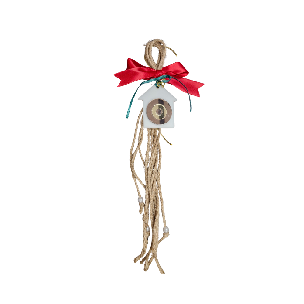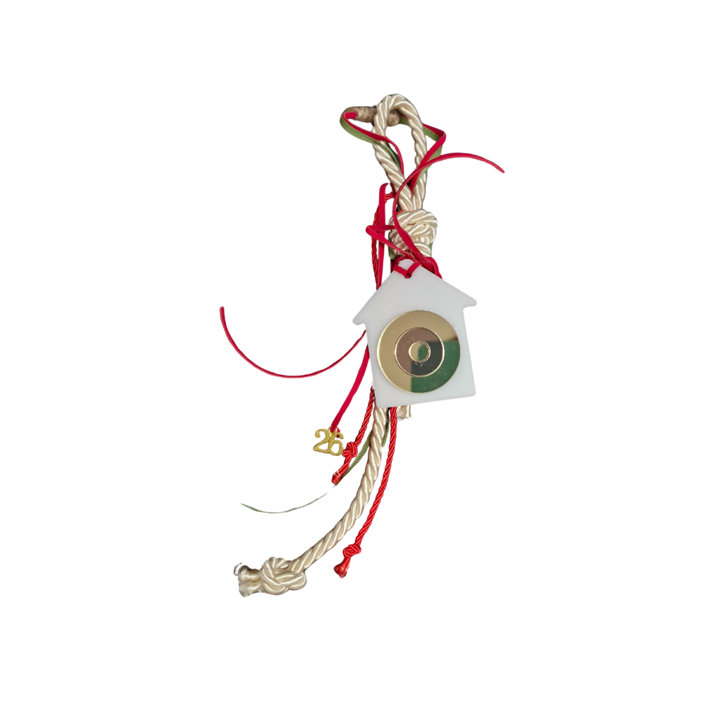 Κρεμαστό Χειροποίητο γούρι με λευκό/χρυσό σπιτάκι