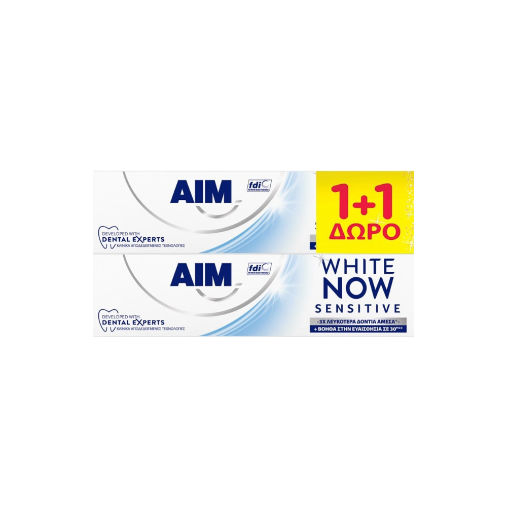 AIM Οδοντόκρεμα 75ml White Now Sensitive 1+1 Δώρο