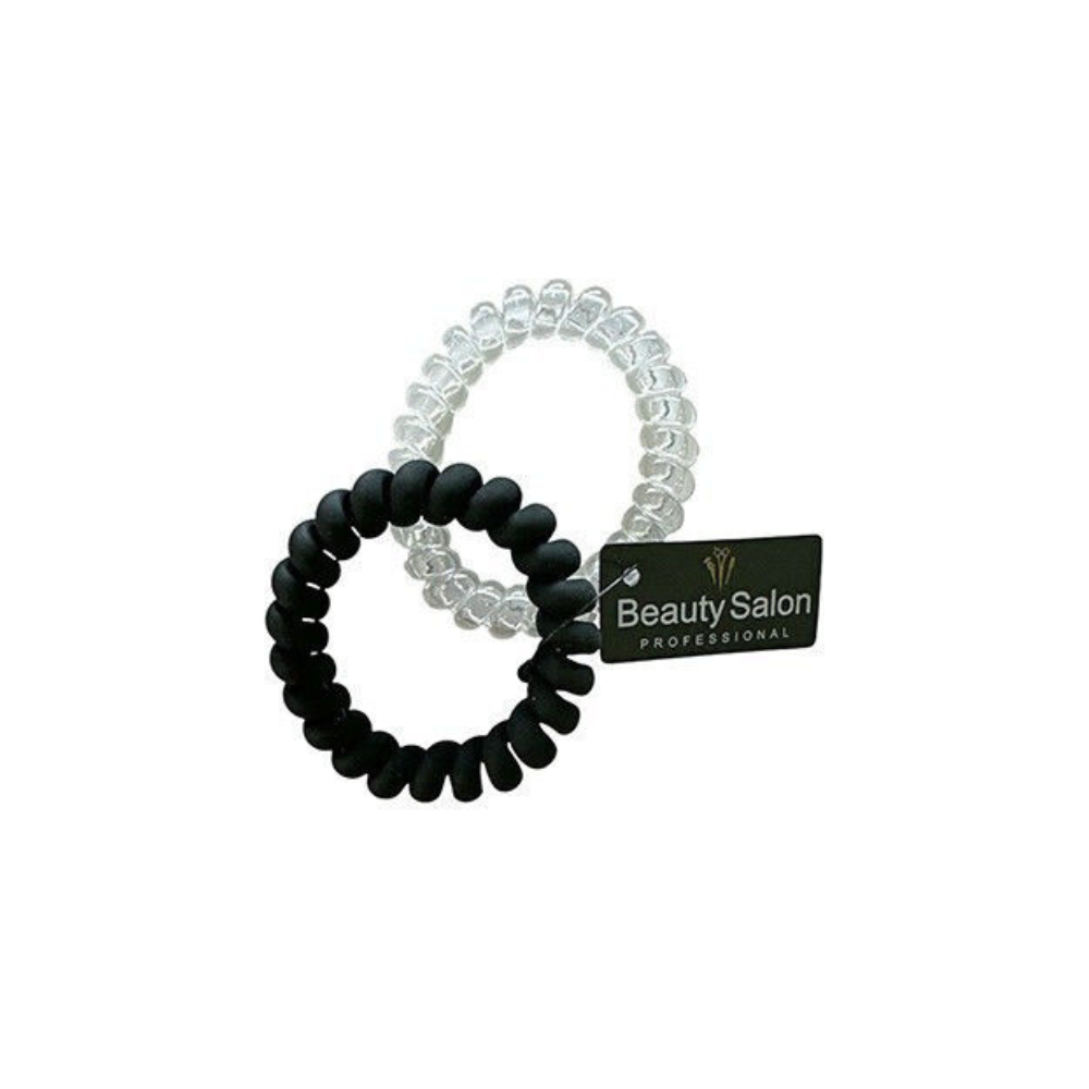 Beauty Salon Λαστιχάκια Σπιράλ Μαλλιών Μαύρα-διαφανα Ματ Σετ 2τμχ