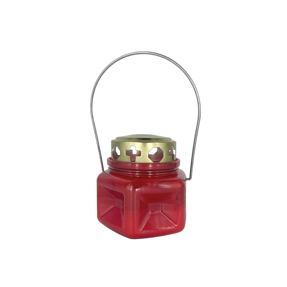 Φαναράκι με Κερί για το Άγιο φως, διαστάσεων 9x8,5cm. Κατασκευασμένο από πλαστικό με μεταλλική λαβή, είναι αντιανεμικό.