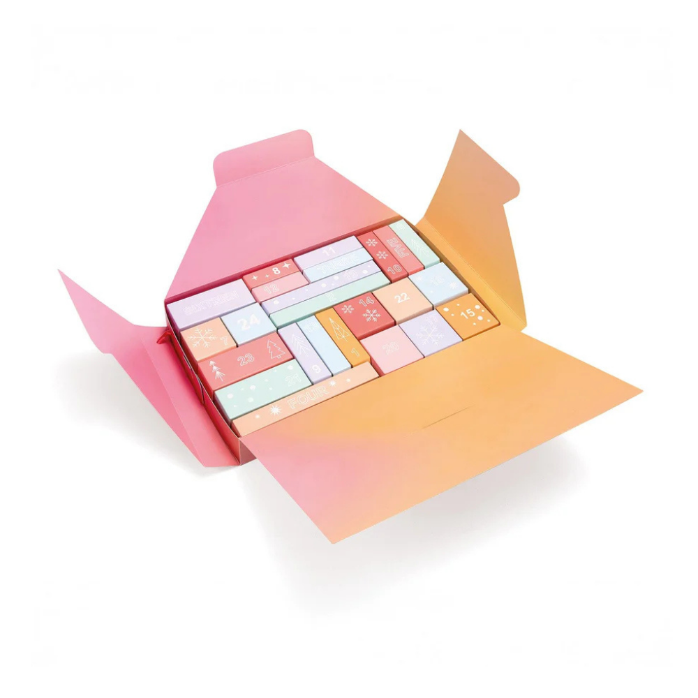 Η συσκευασία θυμίζει κομψό δώρο, με μοντέρνο σχεδιασμό και χερούλι, ιδανική για διακόσμηση ή για προσφορά. Τα φωτεινά παστέλ χρώματα και η πολυτελής εμφάνιση δημιουργούν μια ξεχωριστή εμπειρία ανοίγματος, κάνοντας κάθε ημέρα μέχρι τα Χριστούγεννα μοναδική.